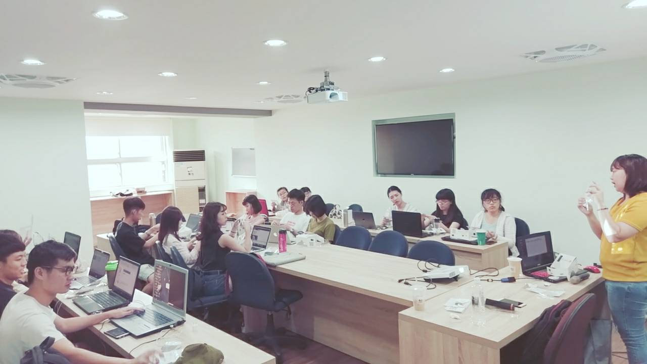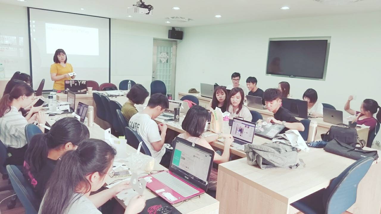 這堂課我們安排"在各大學傳授VR技術"的夥伴來課堂幫同學上課,亮亮老師正在教大家組裝cardboard VR,同學們也非常期待待會VR體驗。